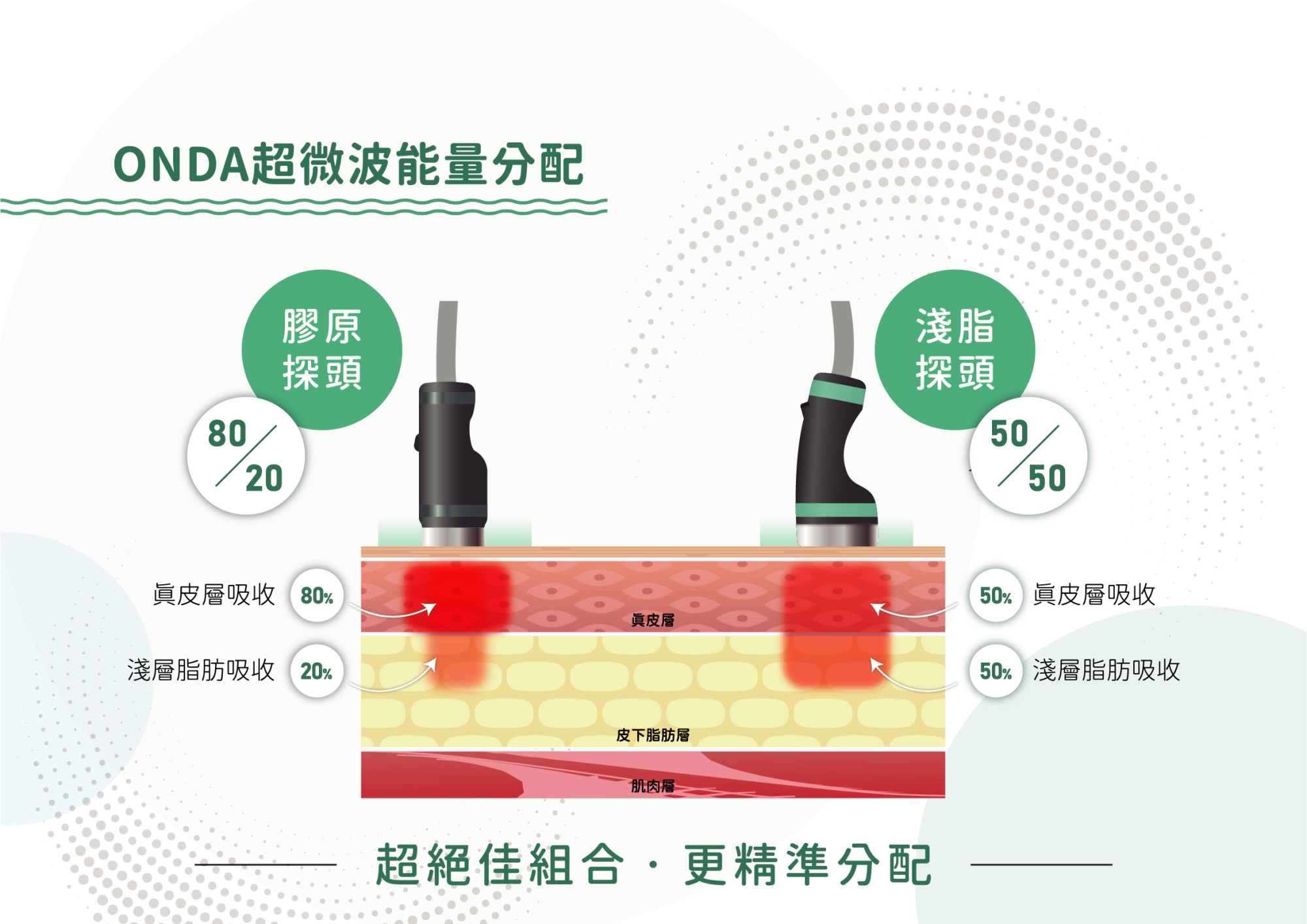ONDA是義大利 DEKA 原廠研發的新一代醫療級超微波儀器,透過2.45GHz 超高頻微波技術,讓能量能有效穿透皮膚表層,直達皮下脂肪層,大幅減少能量流失,讓每一分熱效應都用在對的位置。