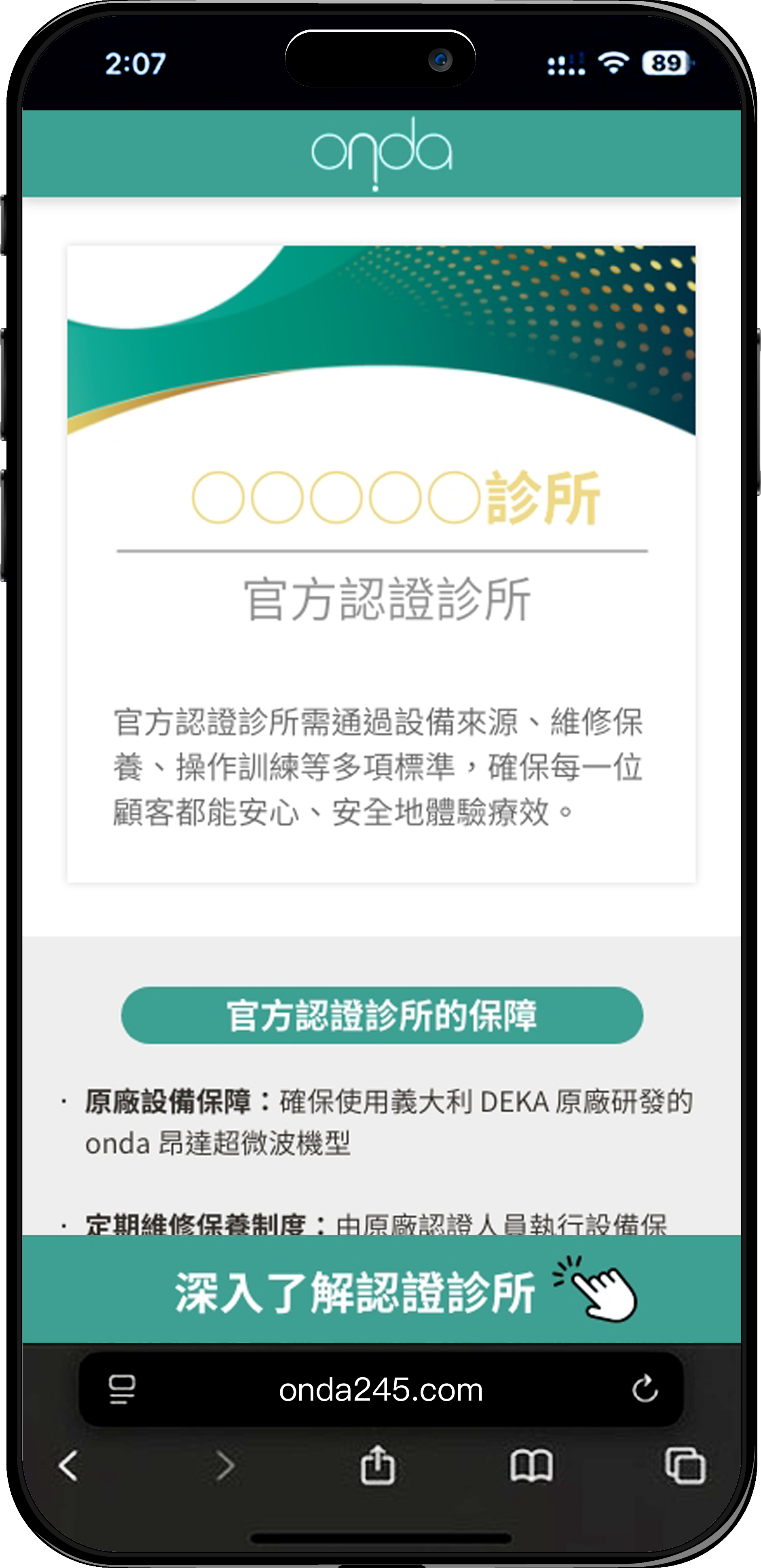 查看是否顯示「onda 官方認證診所」頁面